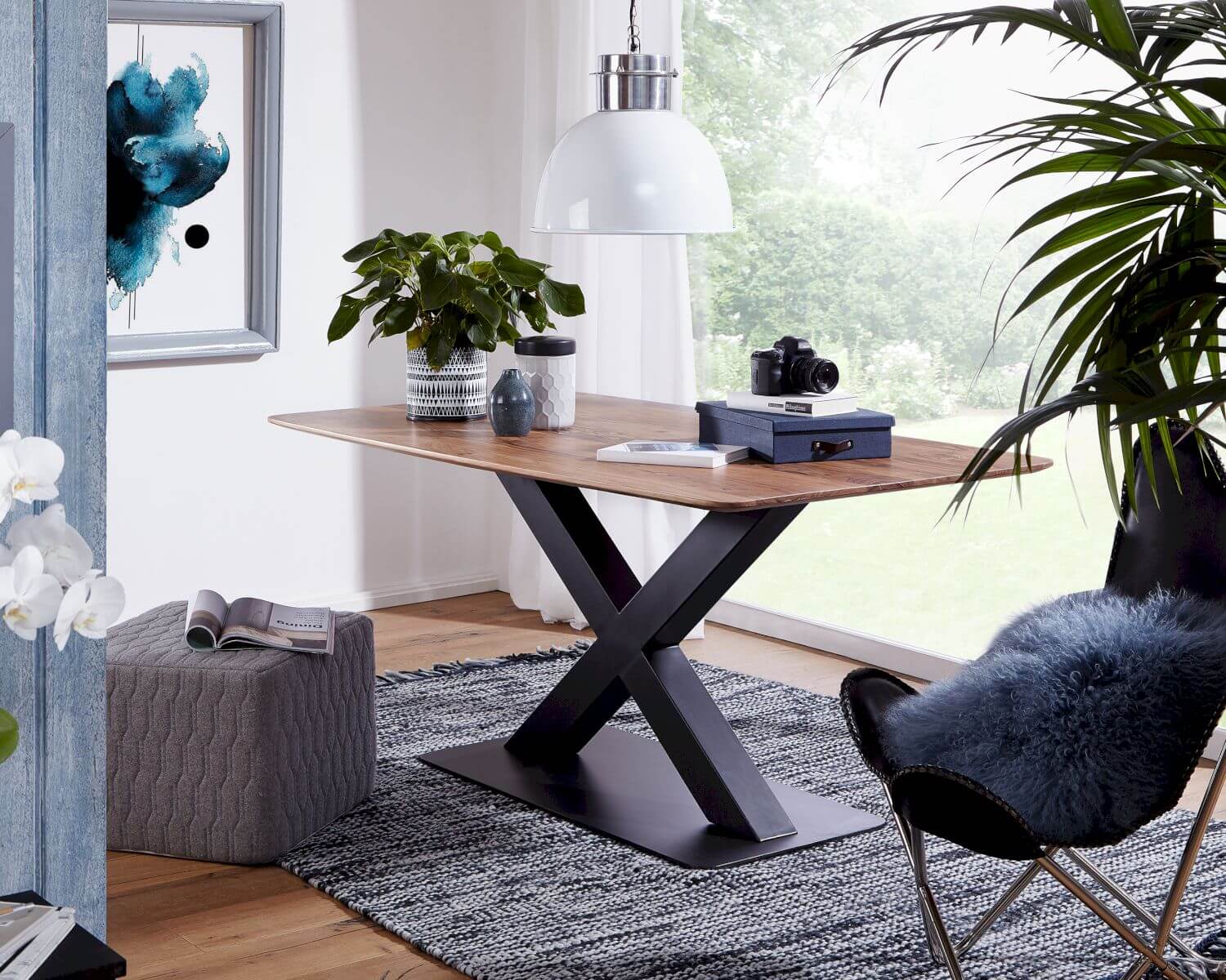 3S Frankenmöbel Akazie Massivholz Esstisch X-Frame