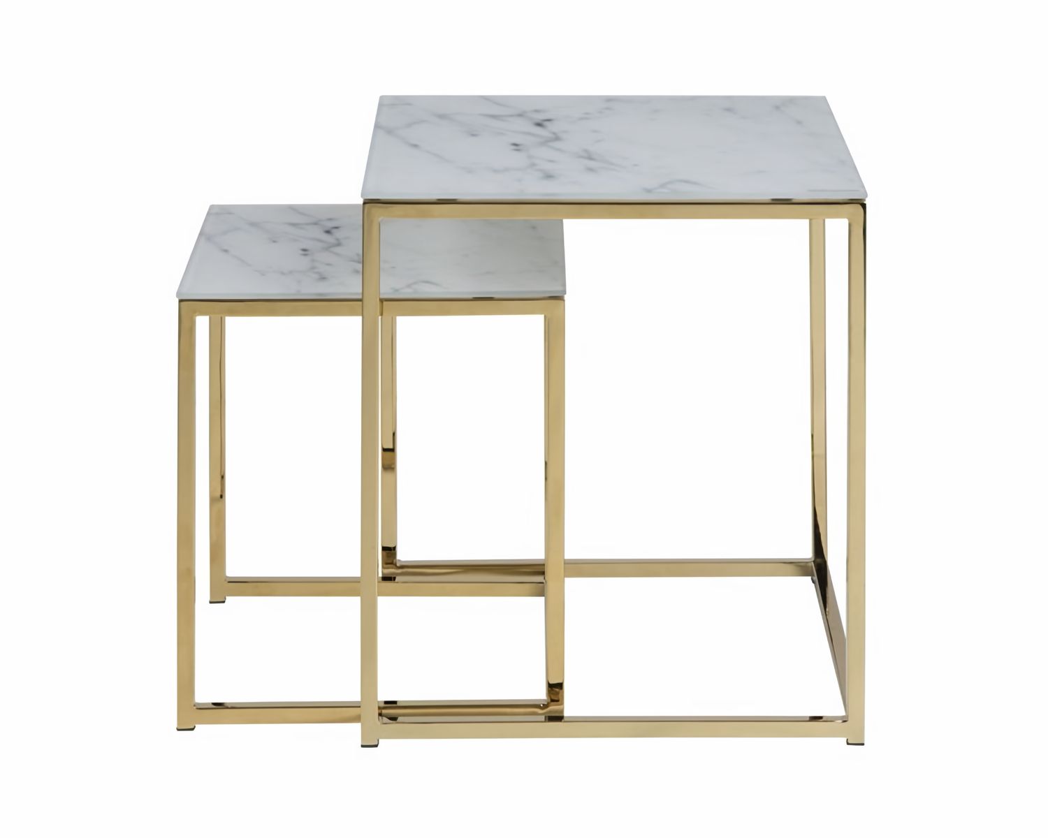 Das wunderschöne Ecktisch 2er Set »Alisma« besteht jeweils aus einem hochwertigen Gestell, welches in Chrom Gold gehalten ist.