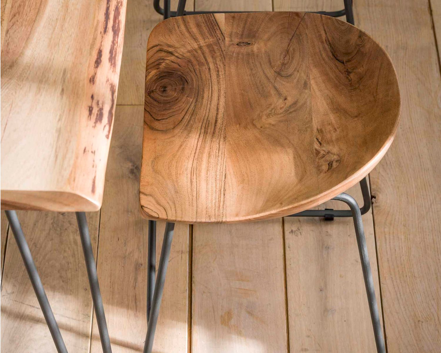 Diese trendigen EsszimmerHocker sind aus Akazienholz gefertigt. Der Sitz hat eine Größe von 100 cm, mit einem pulverbeschichteten Rahmen.
