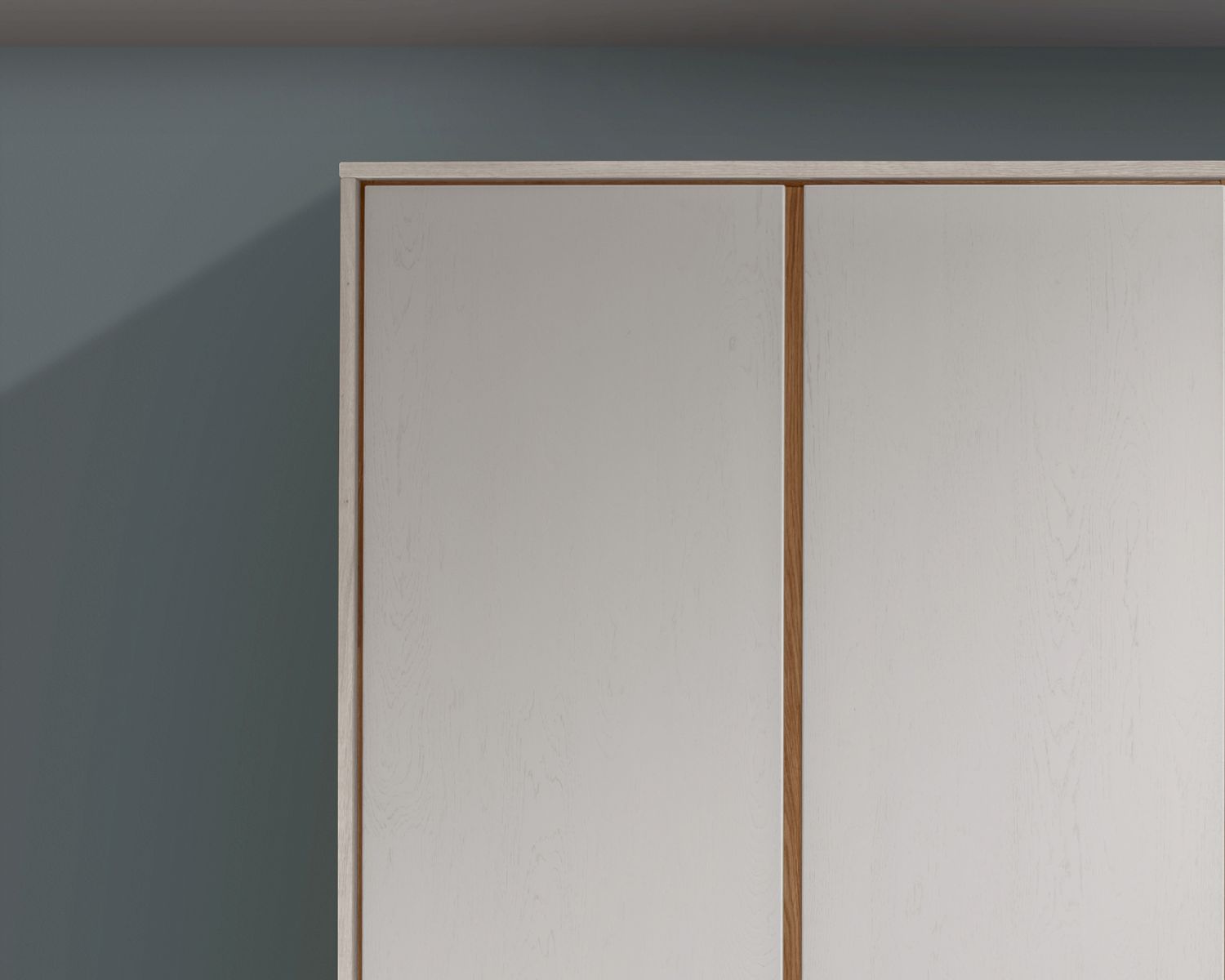 Sie erhalten das Passepartout, das speziell für den Kleiderschrank gefertigt ist, in der Ausführung Wildeiche, Grau oder Weiß.