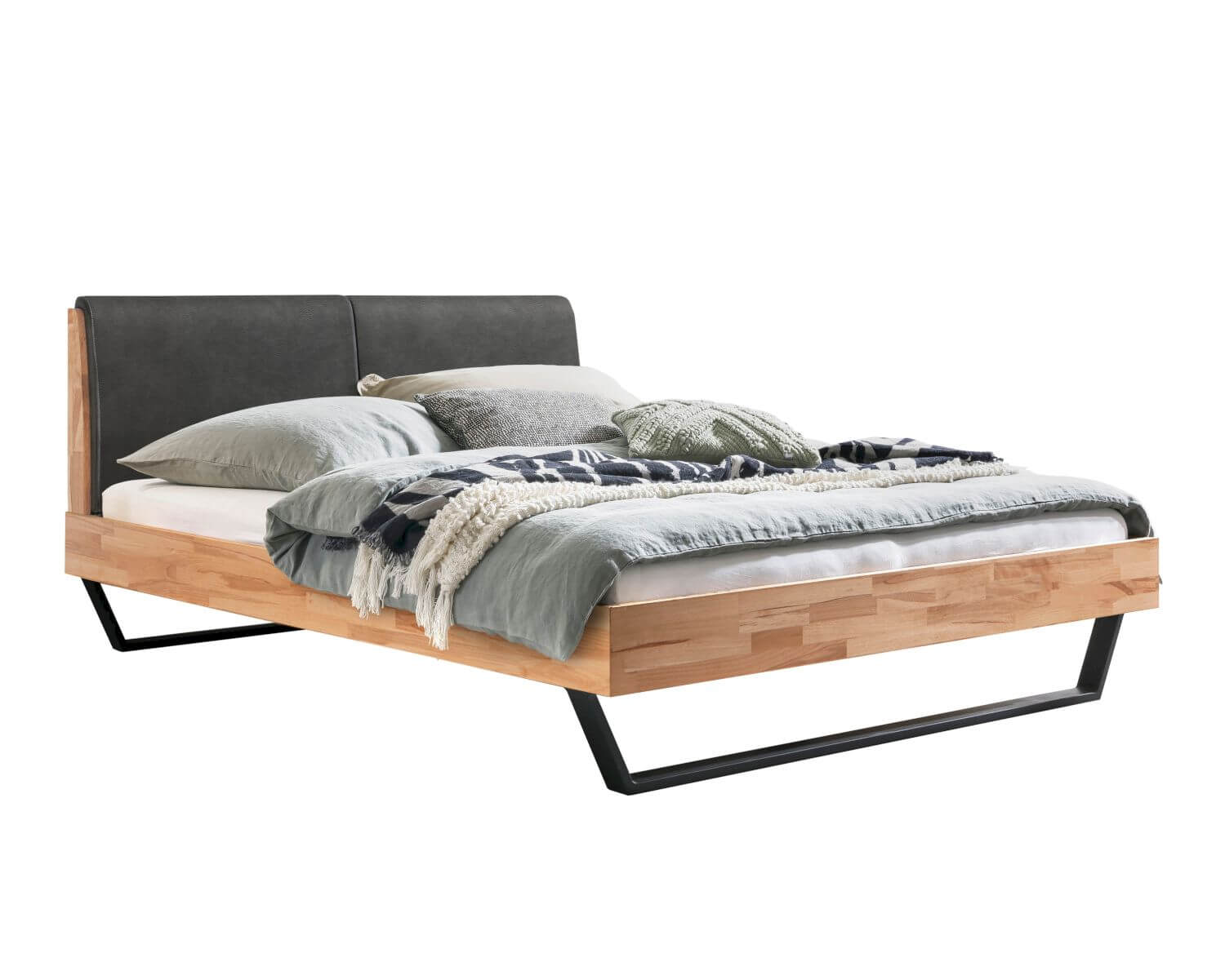Das Bett ist in 3 verschiedenen Bettgrößen, 3 Holzausführungen und 2 Fußhöhen erhältlich. Das Kopfteil erhalten Sie in 2 Stoffausführung.