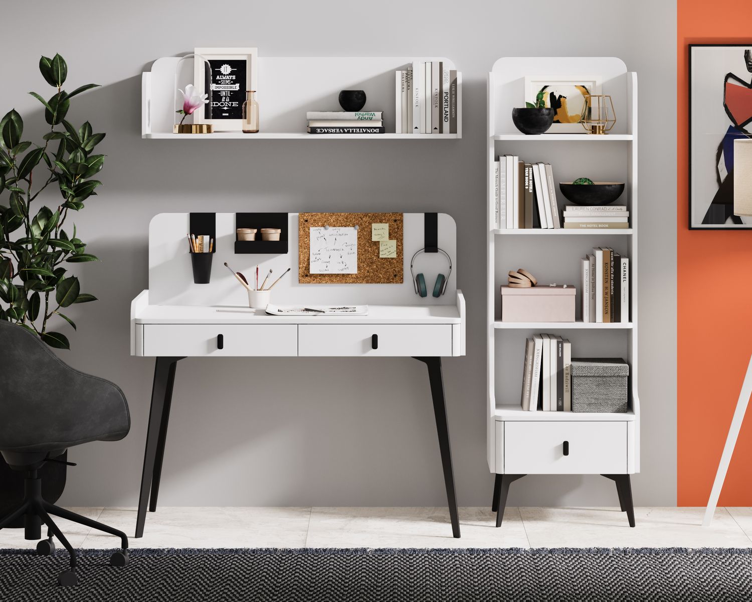 Das Wandregal ist die perfekte Ergänzung zum Vena Schreibtisch und schafft eine harmonische Einheit in Ihrem Kinderzimmer oder Arbeitszimmer. Durch die Kombination dieser beiden Möbelstücke entsteht ein funktionaler Arbeitsplatz, der zum Lernen und Arbeiten einlädt. Die großzügige Ablagefläche des Regals bietet ausreichend Platz für Bücher, Lernmaterialien oder Dekoration.