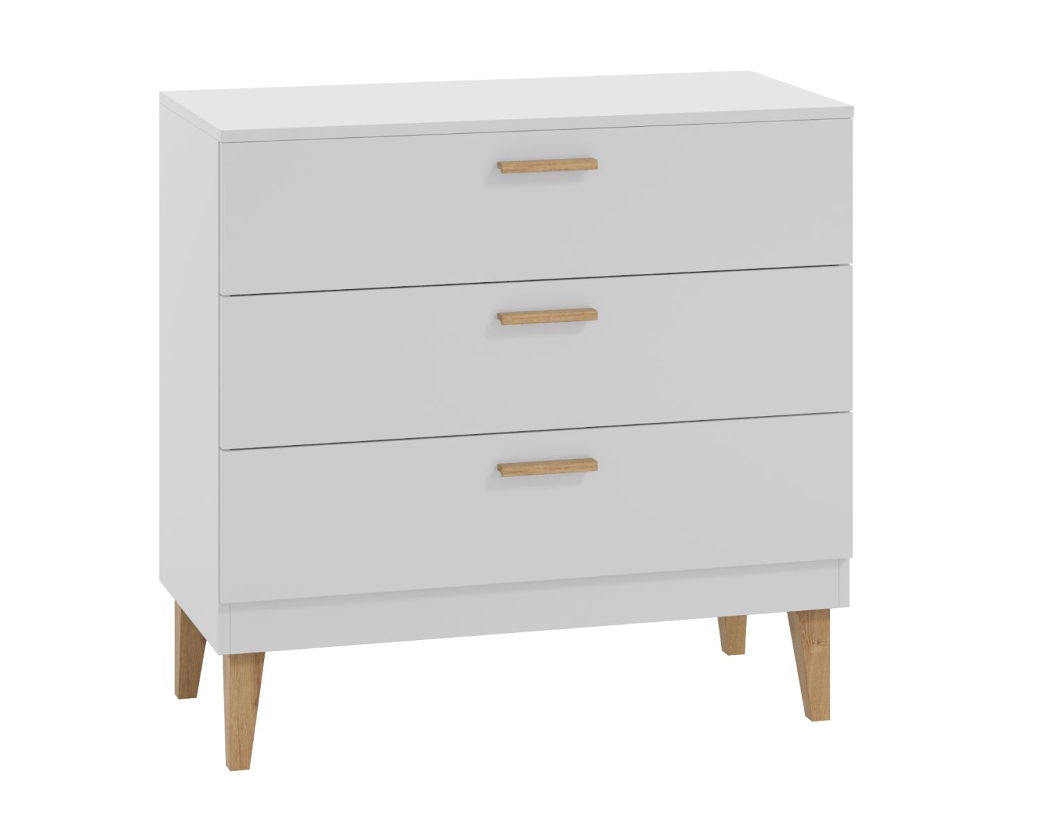 Sie bestehen aus einer 18 mm mattweißen Möbelholzplatte. Ergonomische Griffe ermöglichen ein einfaches Öffnen und bestehen aus massivem, lackierten Eichenholz.