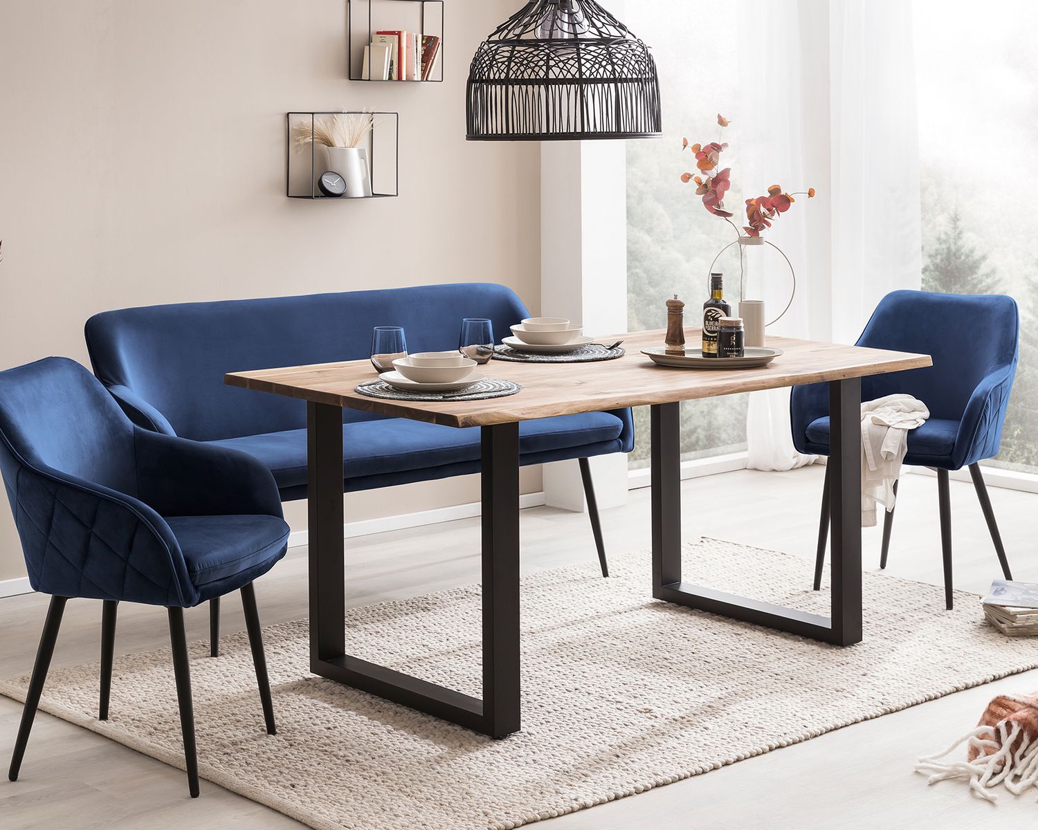 Wer eine außergewöhnliche Einrichtung für das Esszimmer sucht, trifft mit dieser modernen Polsterbank »Finja« im edlen Samt-Look die richtige Wahl.