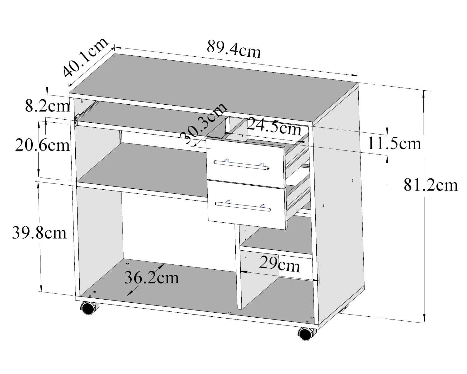 Dieser Küchenschrank »Marius« mit Melaminbeschichtung steht auf vier Lenkrollen und ist mit einem offenen Stauraum, einem Schiebetablett und zwei Schubladen ausgestattet.
