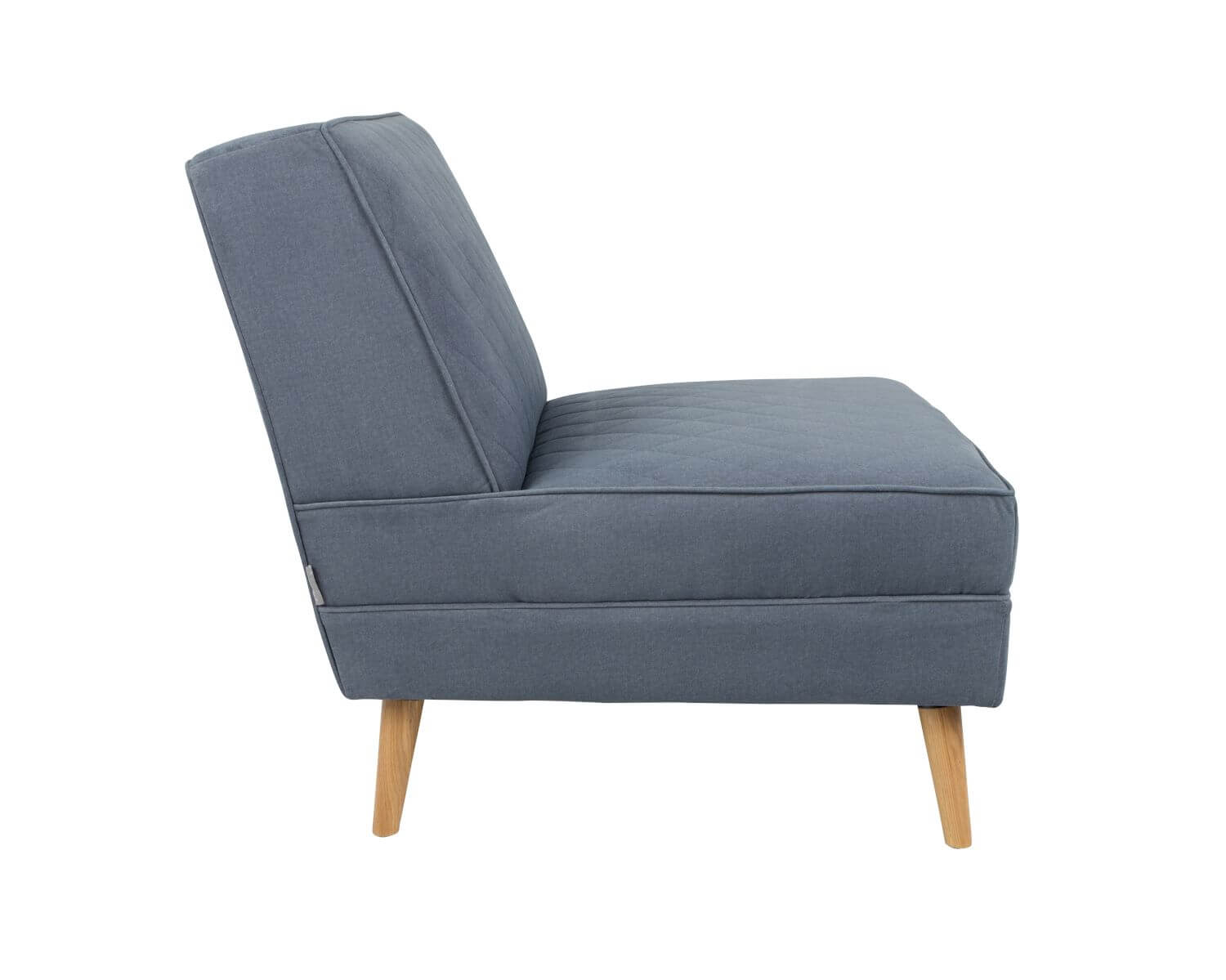 Der Stoffbezogene Sessel ist weich gepolstert und bietet mit seiner großzügigen Sitzfläche einen hohen Komfort. Die Rückenlehne, sowie die Sitzfläche, sind gesteppt und sorgt damit für optische Abwechslung. Die kurzen Beine sind aus solidem Tannenholz und mit einer natürlichen Lackierung versehen.